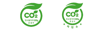 언뜻 보면 비슷해 보이지만, 오른쪽 저탄소 인증마크엔 "저탄소"라고 양쪽에 별표까지 해서 써 놓았죠. 이 표시가 있어야 저탄소 인증제품이에요!