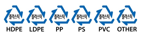 페트병을 제외한 플라스틱 재활용 마크는 재질에 따라 구분이 되어 있어요.
