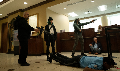 경찰에 포위된 팀원들은 인질극으로 시간을 끌고, 메이슨의 전 연인(?) 에이미가 현장에 나타나 메이슨과 협상을 시도한다.